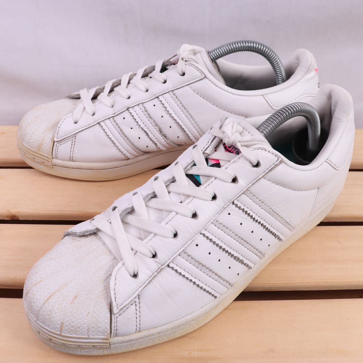 - z1723 アディダス スーパースター US8 26.0cm/白 ホワイト 水色 ライトブルー ピンク adidas SUPERSTAR メンズ スニーカー 中古