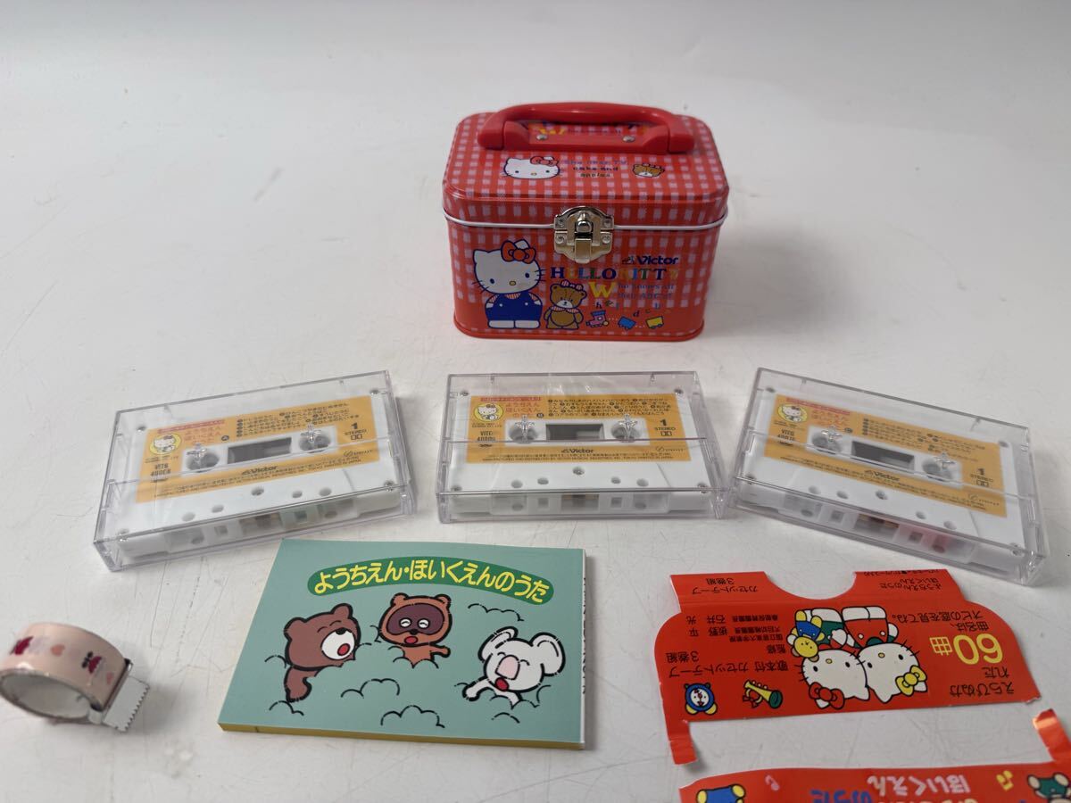 - 未使用 HELLO KITTY ハローキティ Victor カンカン 缶 1985年 ミニ 手提げ収納 ボックス 希少 レア BOX バッグ ビクター サンリオ SANRIO