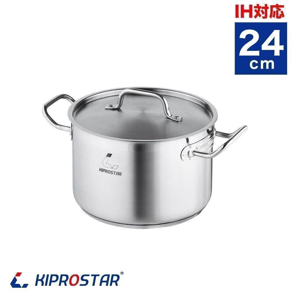 > 【新品】KIPROSTAR IH対応 業務用 ステンレス半寸胴鍋(蓋付) 24cm 寸胴鍋 両手鍋 ステンレス鍋