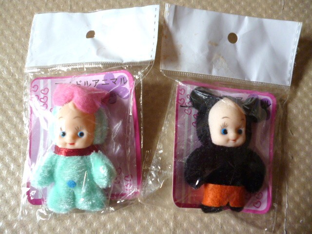 - キューピー アイドル アニマル フィギュア 黒 水色 ボールチェーン ストラップ2個 未開封