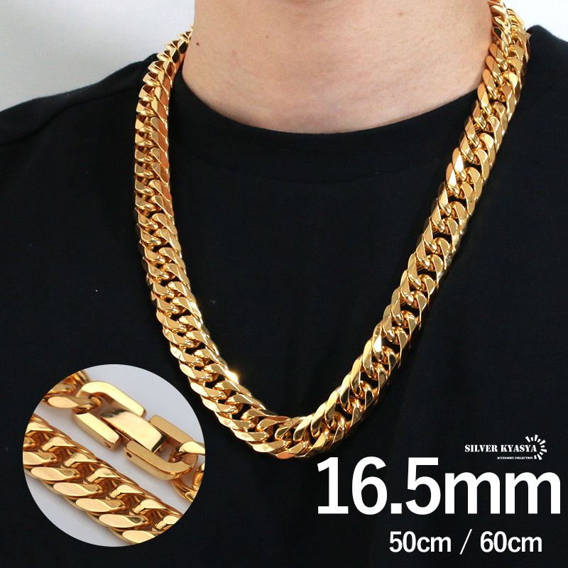 > (60cm) 幅16.5mm ステンレス 太め 極太 喜平ネックレス 中折式 金 ダブル喜平チェーンネックレス 18金 18k gp