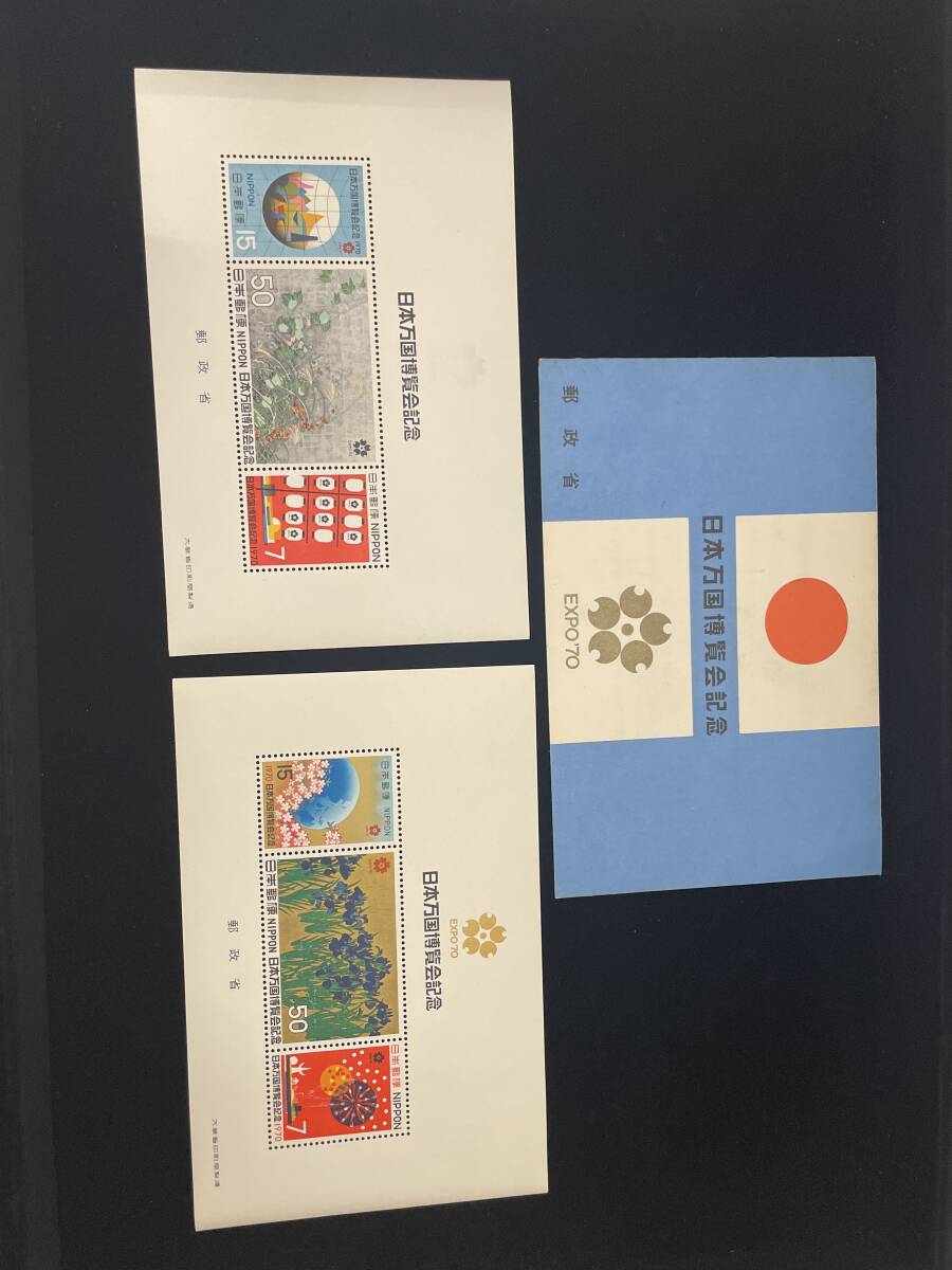 - 日本万国博覧会記念 小型シート 15.7円1枚50円2枚 青ケース付 1970年 昭和45年 小型切手シート
