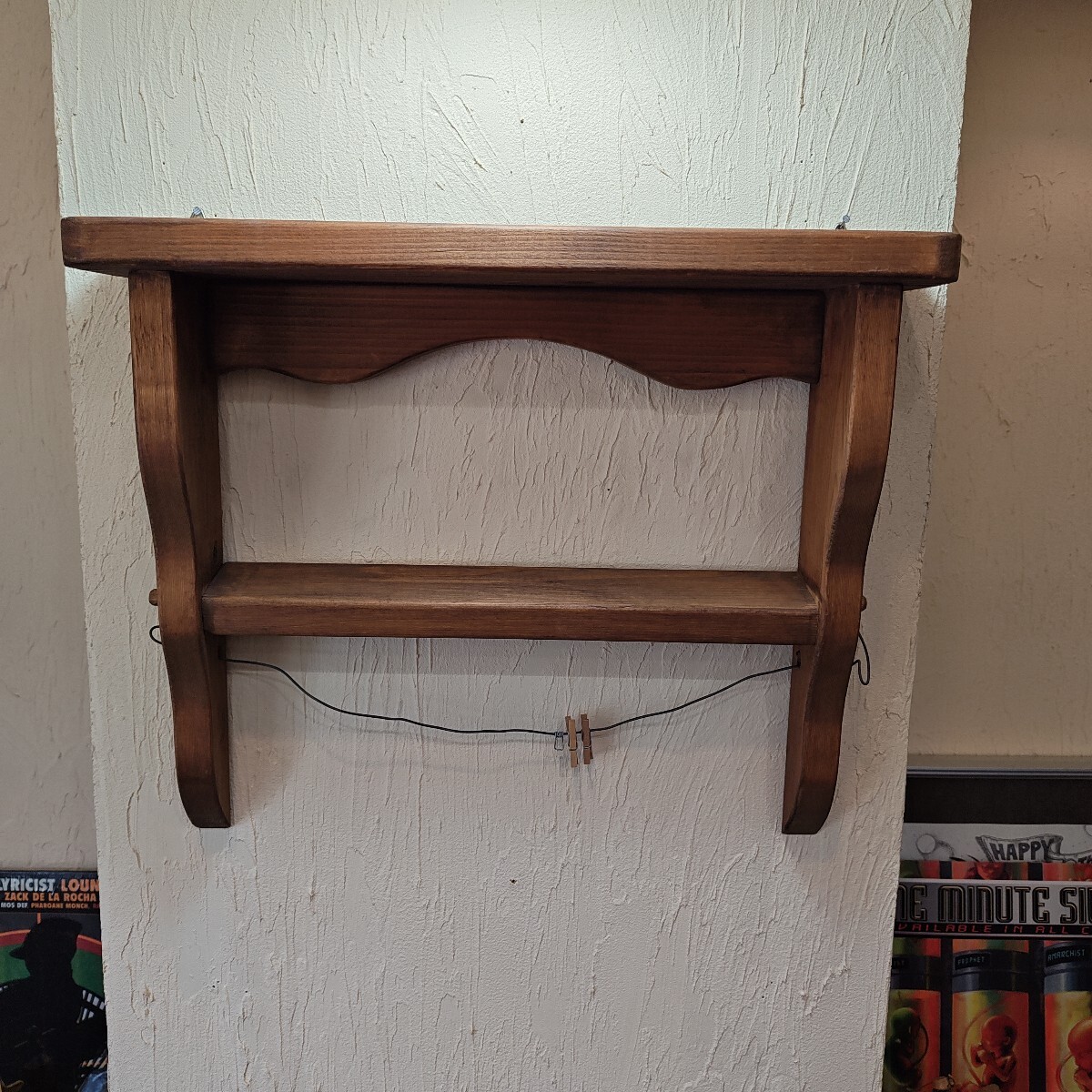- 9088 日本古風堂 木製 アンティーク木製壁掛けラック 幅37cm 高さ30 奥行き9cm