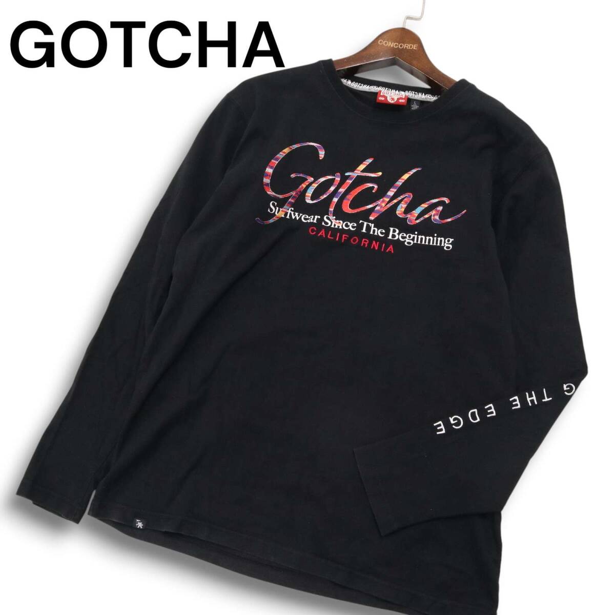GOTCHA ガッチャ 通年 ロゴ★ 長袖 グラフィック カットソー ロンTシャツ Sz.L メンズ 黒 サーフ拍卖