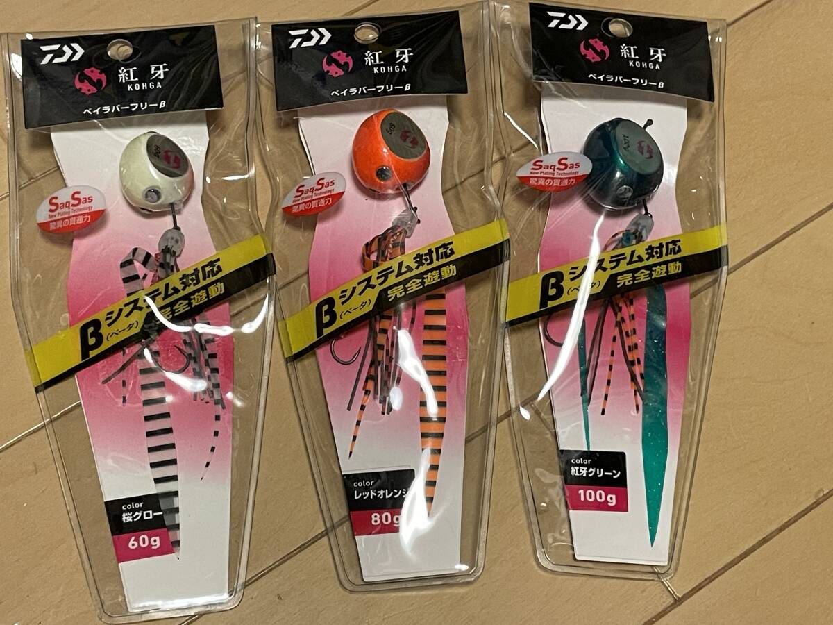 - ダイワ▲紅牙ベイラバーフリーβ▲60g 桜グロー&80g レッドオレンジ&100g 紅牙グリーン▲マダイ キジハタ ヒラメ 青物に▲定価総額3795円