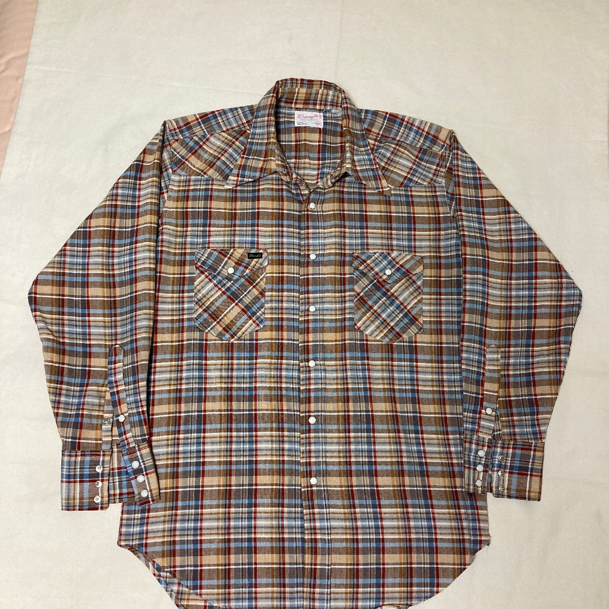 > Wrangler ラングラー 希少 美品 USA製 70s ヴィンテージ チェック ロングスリーブ ウエスタンシャツ ブラウン系