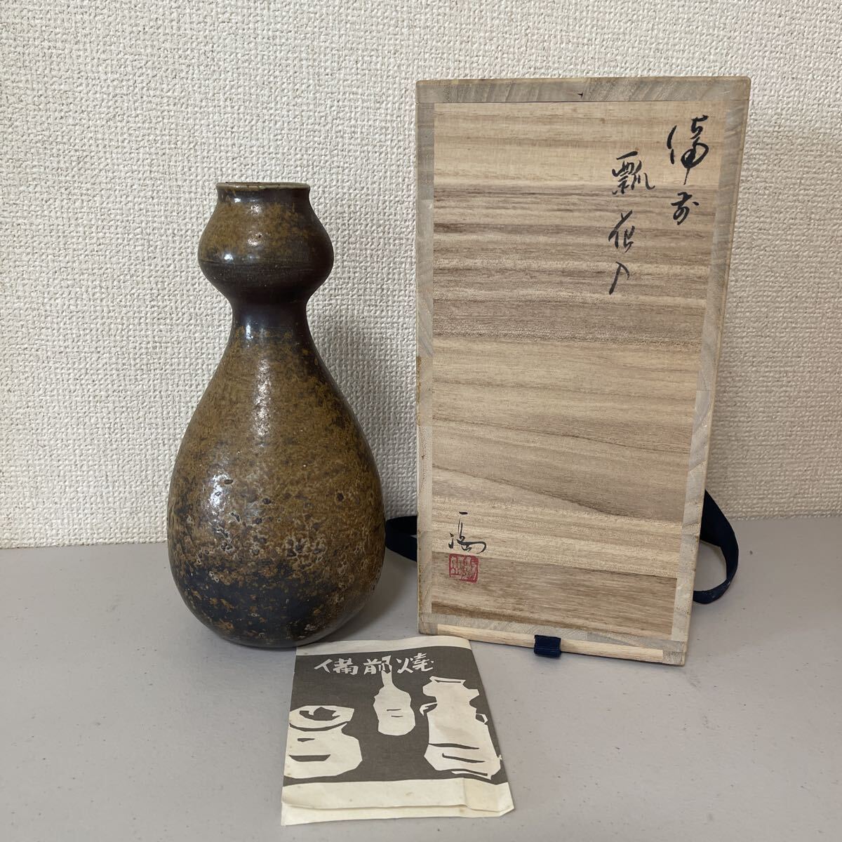 - 備前焼 伊勢崎満 瓢花入 共箱 花器 岡山県重要無形文化財保持者 1934〜2011 中世の古窯復元 高さ約23㎝ 最大直径約10㎝ 13ー3