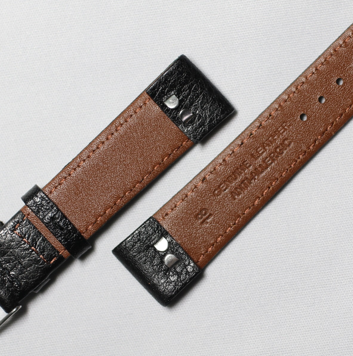 - 18㎜ オープンエンド 高級イタリアンカーフ 黒・ブラック 型押 SS/銀色尾錠 固定ラグ ワイヤーラグ用 fixed Lug 新品