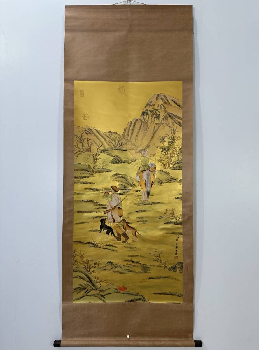 - *旧蔵* 中国古画 【【郎世寧】狩猟図 】純手繪画 芯を描いて表装していない 宣紙 水墨画 極細工 中国古玩 縦幅 骨董品 古美味 ly100