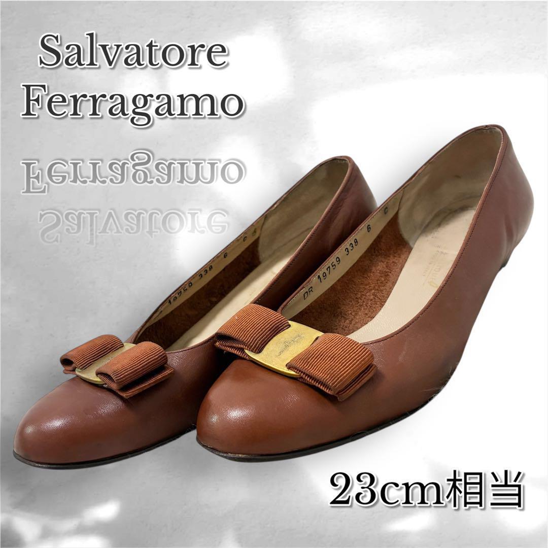- FERRAGAMO フェラガモ パンプス ローヒール 23cm相当 茶色 ヴァラ 4600 000872012