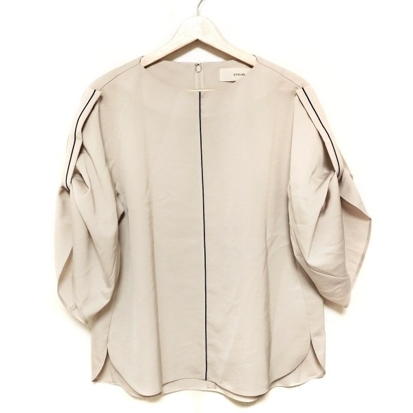> シクラス CYCLAS 七分袖カットソー サイズ34 S - ピンクベージュ×黒 レディース クルーネック トップス