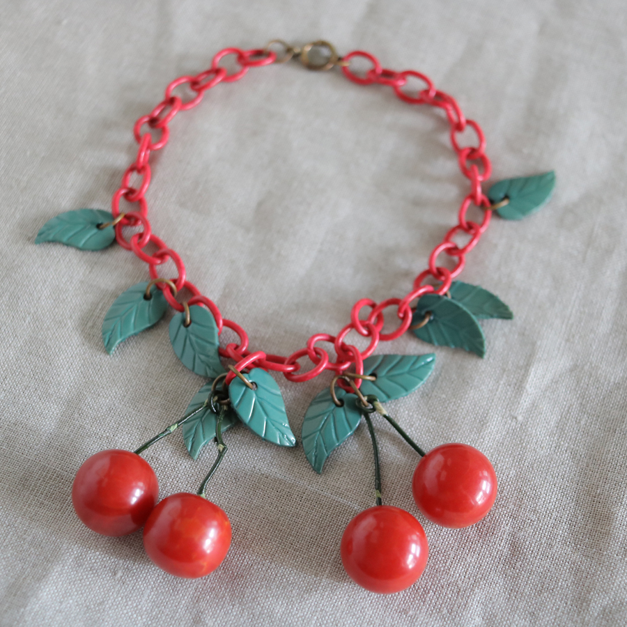 - 1940年 ベークライト さくらんぼネックレス チェリーネックレス ビンテージ フランスアンティーク アンティーク セルロイド ネックレス