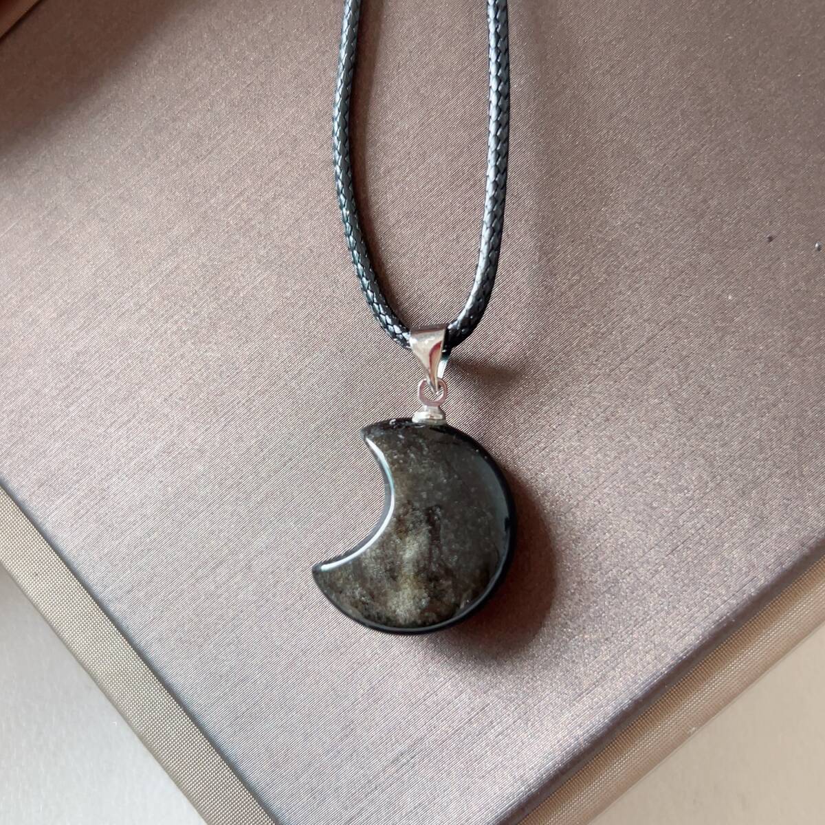 - ◇ゴールデンオブシディアン(黒曜石)◇月形◇ネックレス◇ペンダント◇パワーストーン◇天然石◇プレゼントにも◇040P984