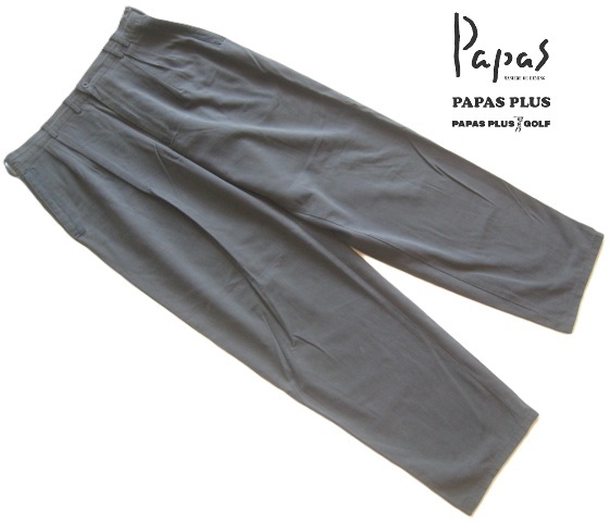- 極上日本製!!パパス Papas*ロゴタグ付き ドローコード入り 2プリーツ ゆったりコットンキュプラパンツ M 濃灰 ダークグレー Papas+ プラス