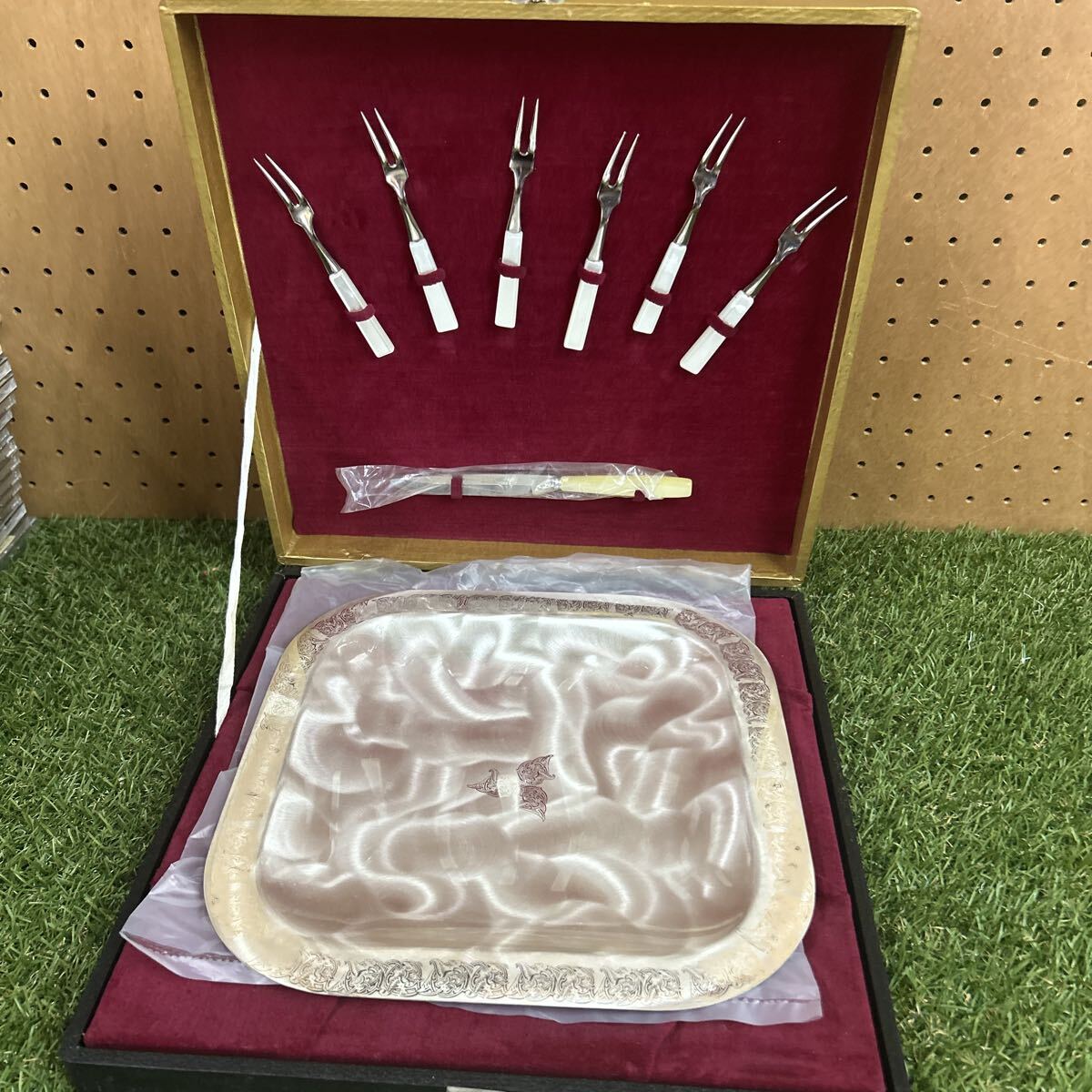- ★洋銀プレート 洋食器 ナイフ/フォークセット フルーツ皿 箱入レトロ★