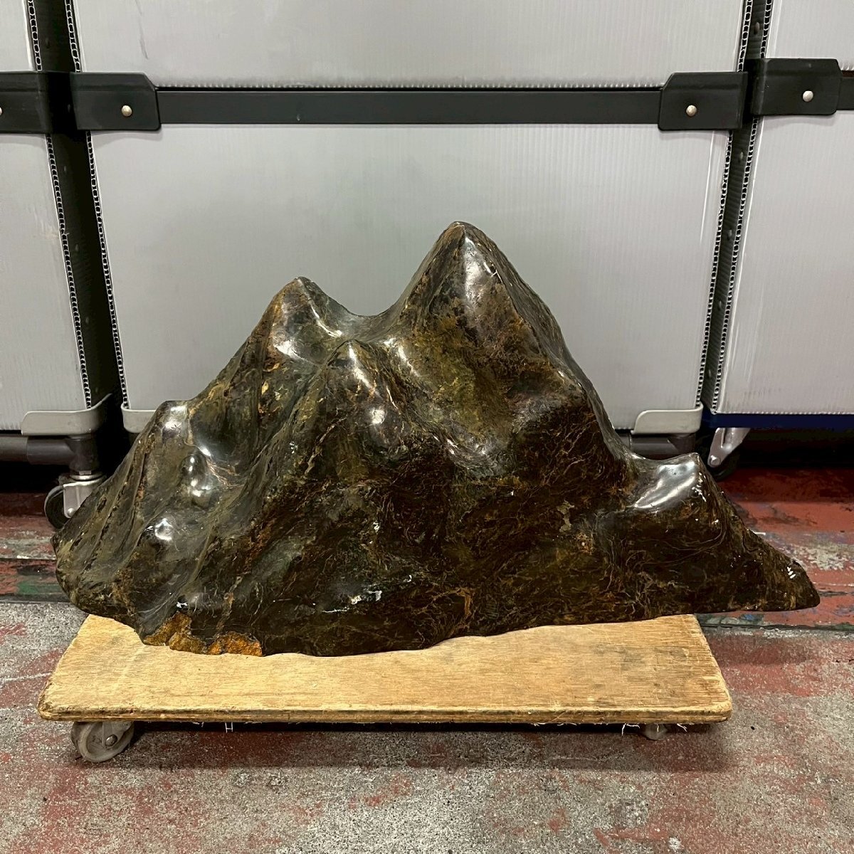 > OM0809-6‐3 石 天然石 自然 石材 岩石 鑑賞 置物 インテリア 山形 台座 伝統 工芸 工芸品 高さ28㎝ 横幅65㎝ 奥行13㎝ 17㎏ 140サイズ
