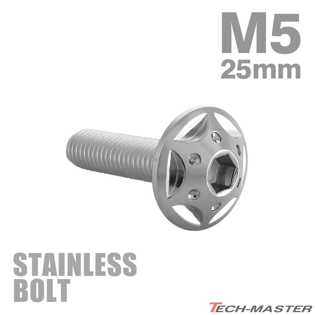 - M5×25mm P0.8 ボタンボルト スターホールヘッド ステンレス シルバー カウル フェンダー 車 バイク カスタム 1個 TR0217