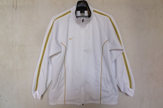 > NIKE DRI-FIT/ナイキ/長袖トラックジャケット/ジャージ素材/チェック柄/前ジップ/ゴールドライン/スポーツ/白/ホワイト/Mサイズ(9/9R7)