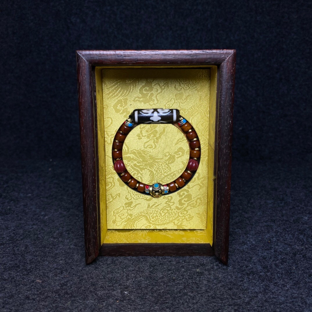 - 蔵友旧蔵出 瑪瑙製 細密彫 天珠手串 花梨木盒付 根付裝身具 希少珍品 貴重品 置物 古賞物 中国古玩 中国古美術品