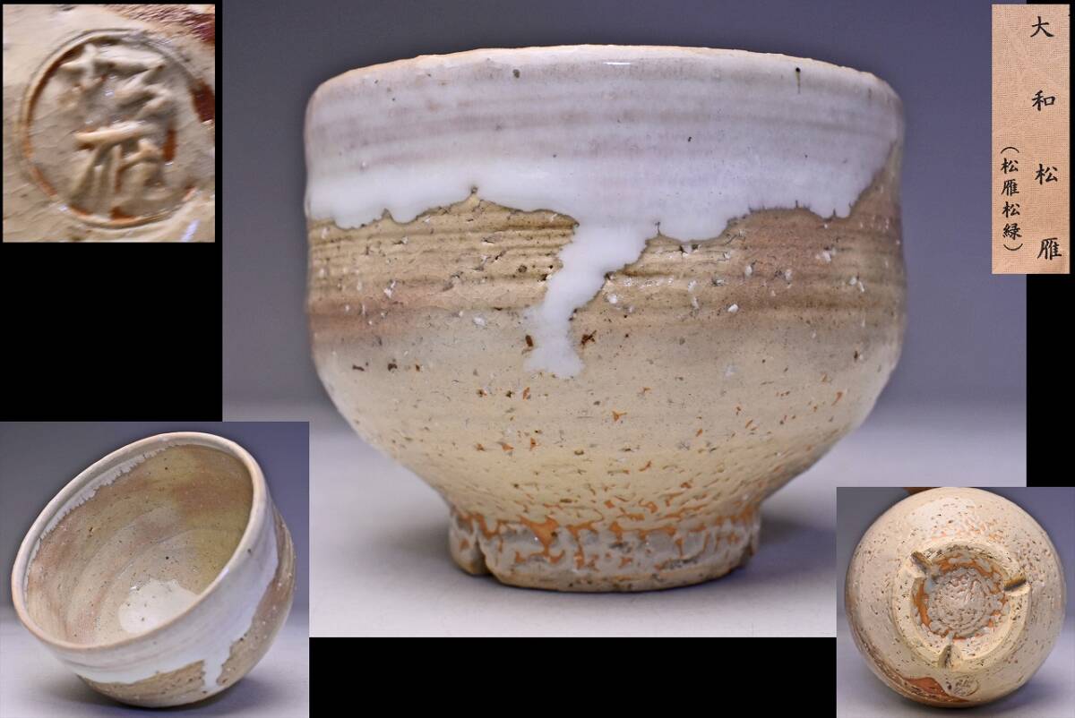 - 大和松雁 ( 松雁松緑) ★ 萩 茶碗 ★ 共布 栞 ★ 景色良く割高台が力強い逸品 ★ 茶道具 ★ 山口県 ★