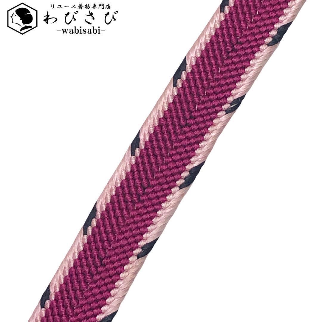 > 和装小物 帯締め 正絹 笹浪組 平組紐 組紐 赤紫色 C-6417 着物 きもの kimono 和服 和装 中古 リサイクル着物 【送料無料】