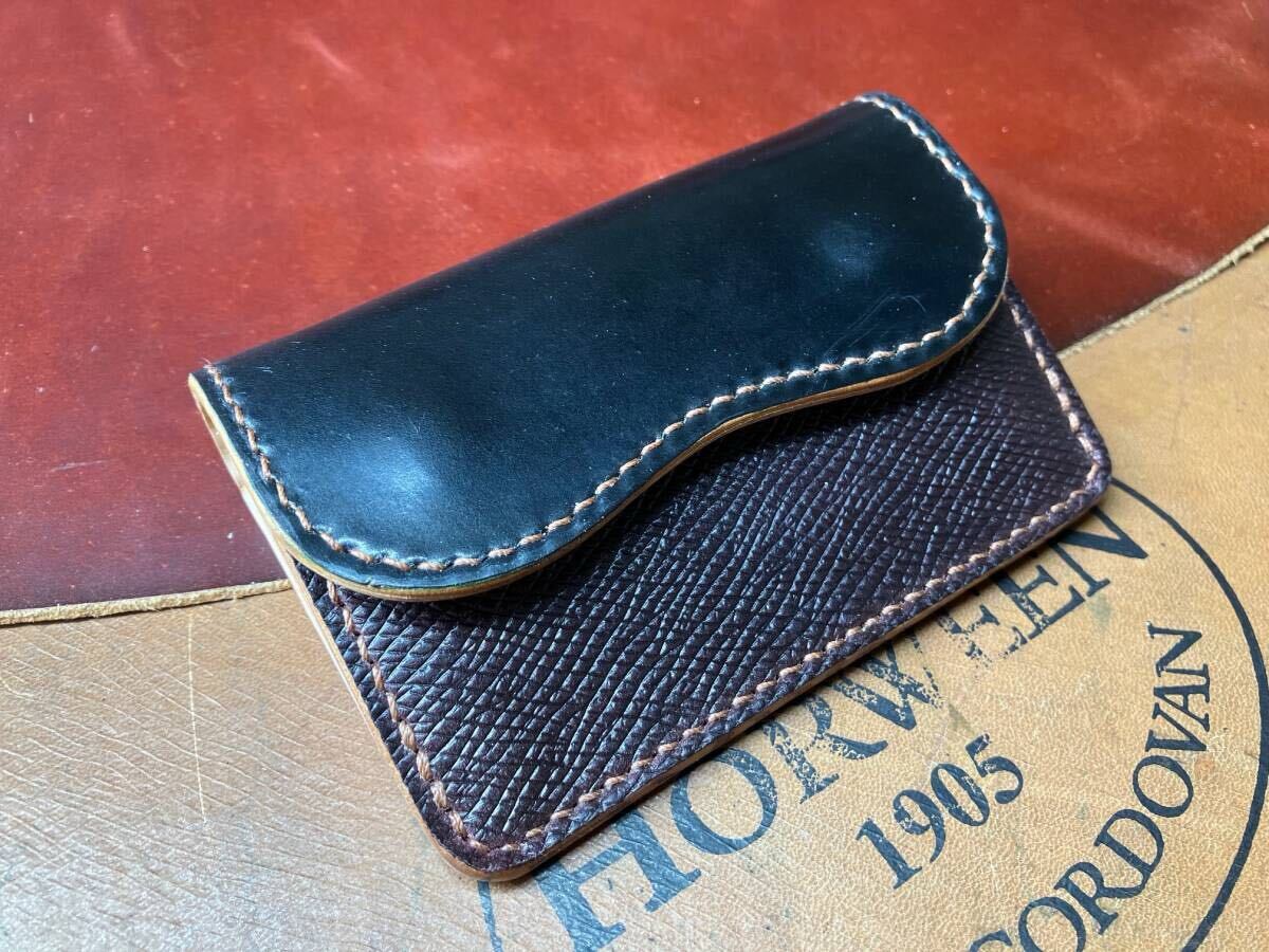 - ■no.1048★コインケースlot.601★ホーウィン社シェルコードバン★ブラック × バーガンディ型押し