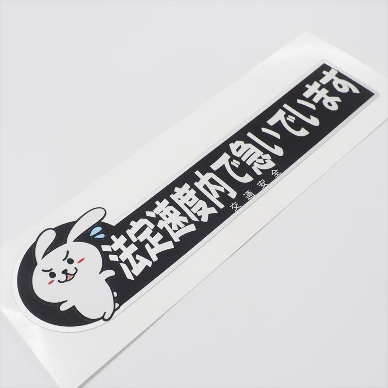 > (シルバー)おもしろ パロディステッカー 法定速度内で急いでいます (黒)ウサギ 交通安全 安全運転 あおり防止 かわいい