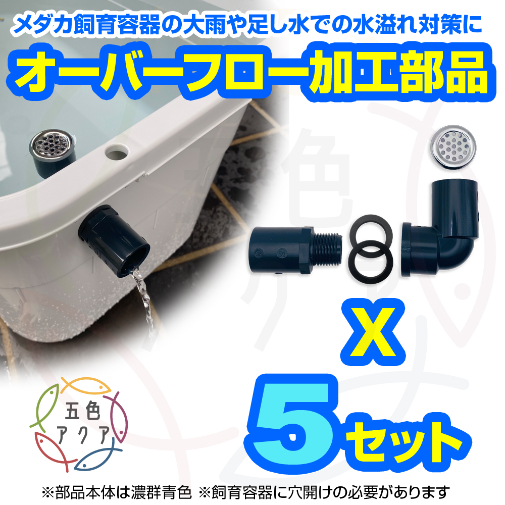 > 【新タイプ】オーバーフロー部品5セット(キャップ付) メダカ飼育容器の大雨対策 メダカ飼育ケース 金魚飼育容器【五色アクア】09