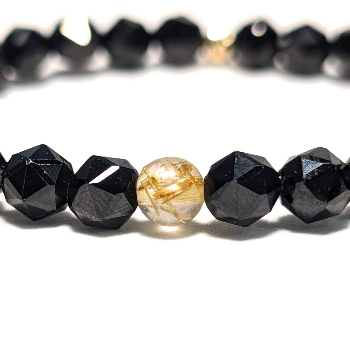 - 運命を照らす光 K18ゴールド スターカットスピネル ゴールドルチル クォーツ 天然石 数珠 ブレスレット エレガントな輝き 敬老の日 ギフト