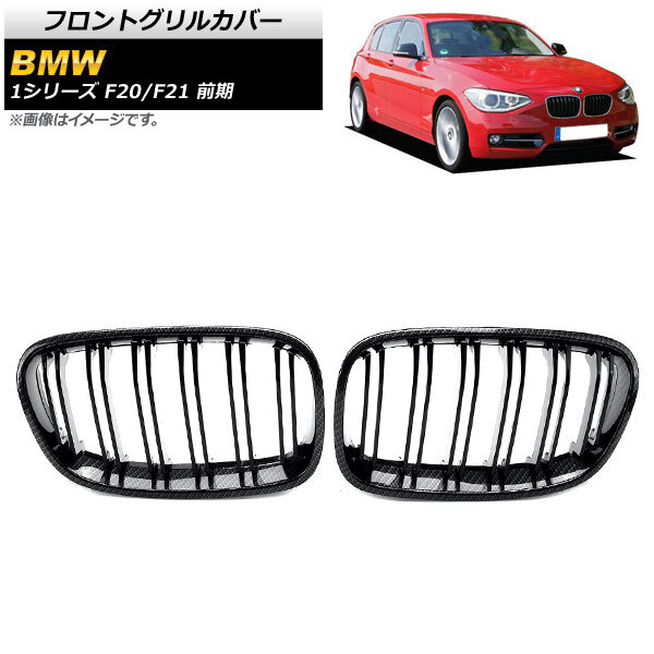 - フロントグリルカバー BMW 1シリーズ F20/F21 前期 2010年~2014年 ブラックカーボン Cタイプ ABS製 ダブルバー