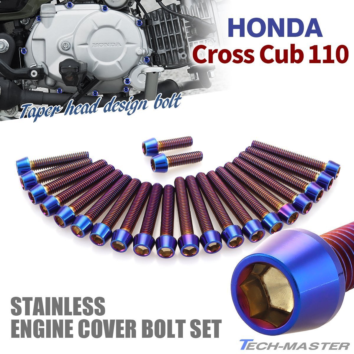 > クロスカブ110 エンジンカバー クランクケース ボルト 22本セット ステンレス製 テーパーヘッド ホンダ車用 焼きチタンカラー TB6340