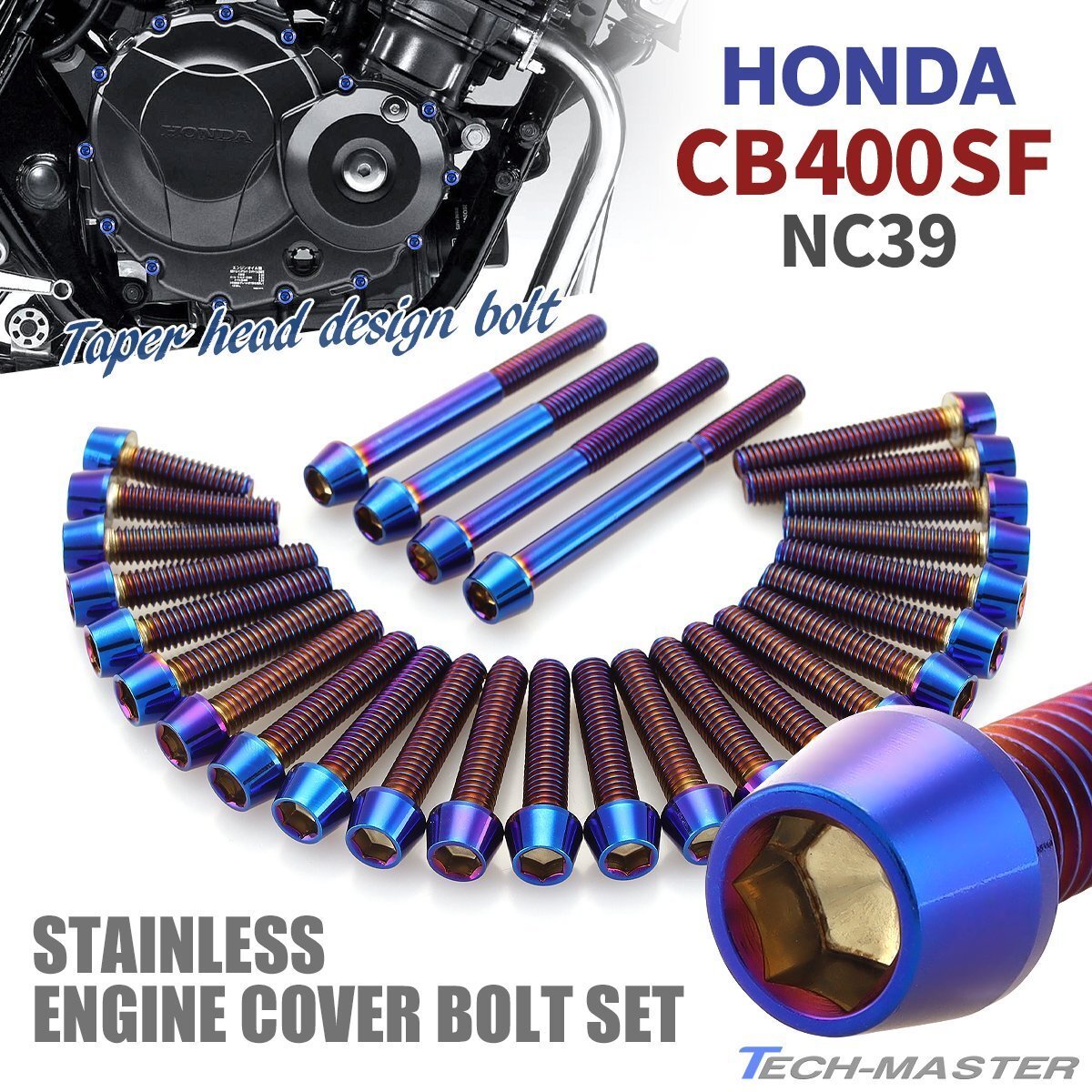 > CB400SF NC39 エンジンカバー クランクケース ボルト 28本セット ステンレス製 テーパーヘッド ホンダ車用 焼きチタンカラー TB6240