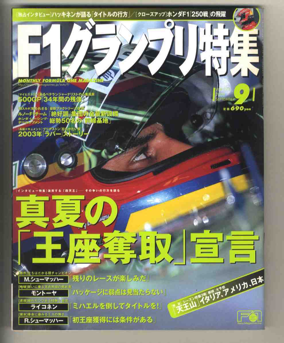 書名/記事: 03.9 F1グランプリ特集/インタビュー特集-四天王その争いの行方を語る、ホンダF1 250戦の飛躍、ルノーF1チーム絶好調集団の全最新設備、ホンダ・レーシング・デベロップメント - 総勢50名の前線基地、、、、…