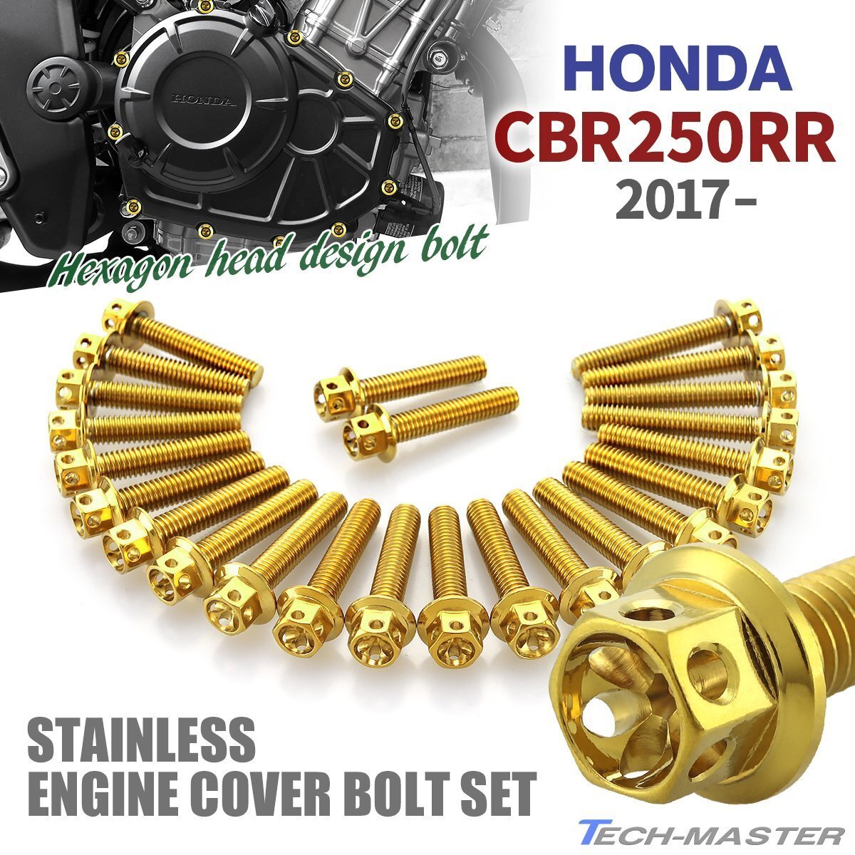 > CBR250RR 2017年~ エンジンカバー クランクケース ボルト 24本セット ステンレス製 フラワーヘッド ゴールドカラー TB6455