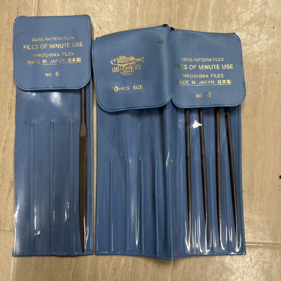 - ●1-2● 魚地球印精密ヤスリ 丸 #6 4本 平 1本