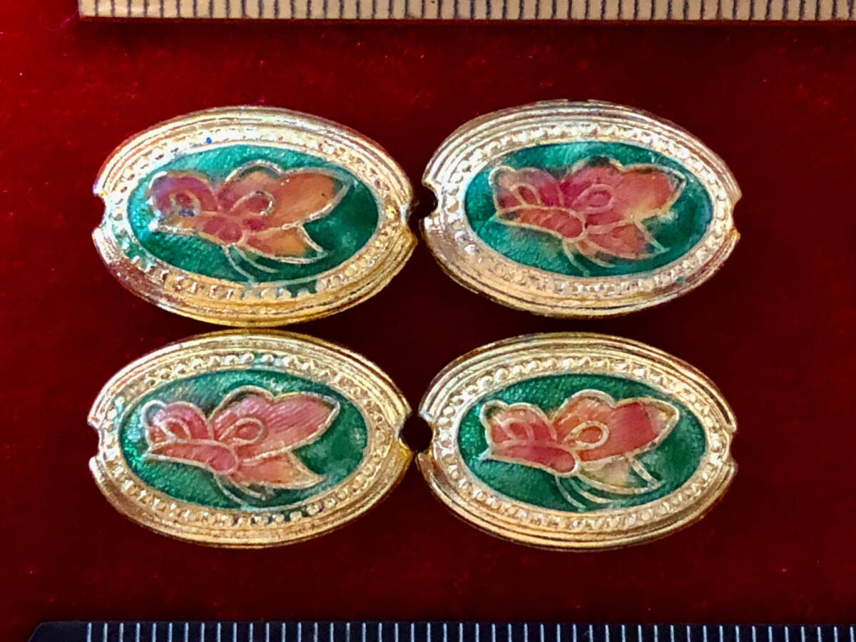 - ¶!¶ 有線七宝焼ワールド - 4色楕円円盤玉で1単位 ¶!¶ 約厚6㎜×13㎜×20㎜ 金線に緑釉澄紅蝶々 手作り 手芸 工芸 インテリア 趣味