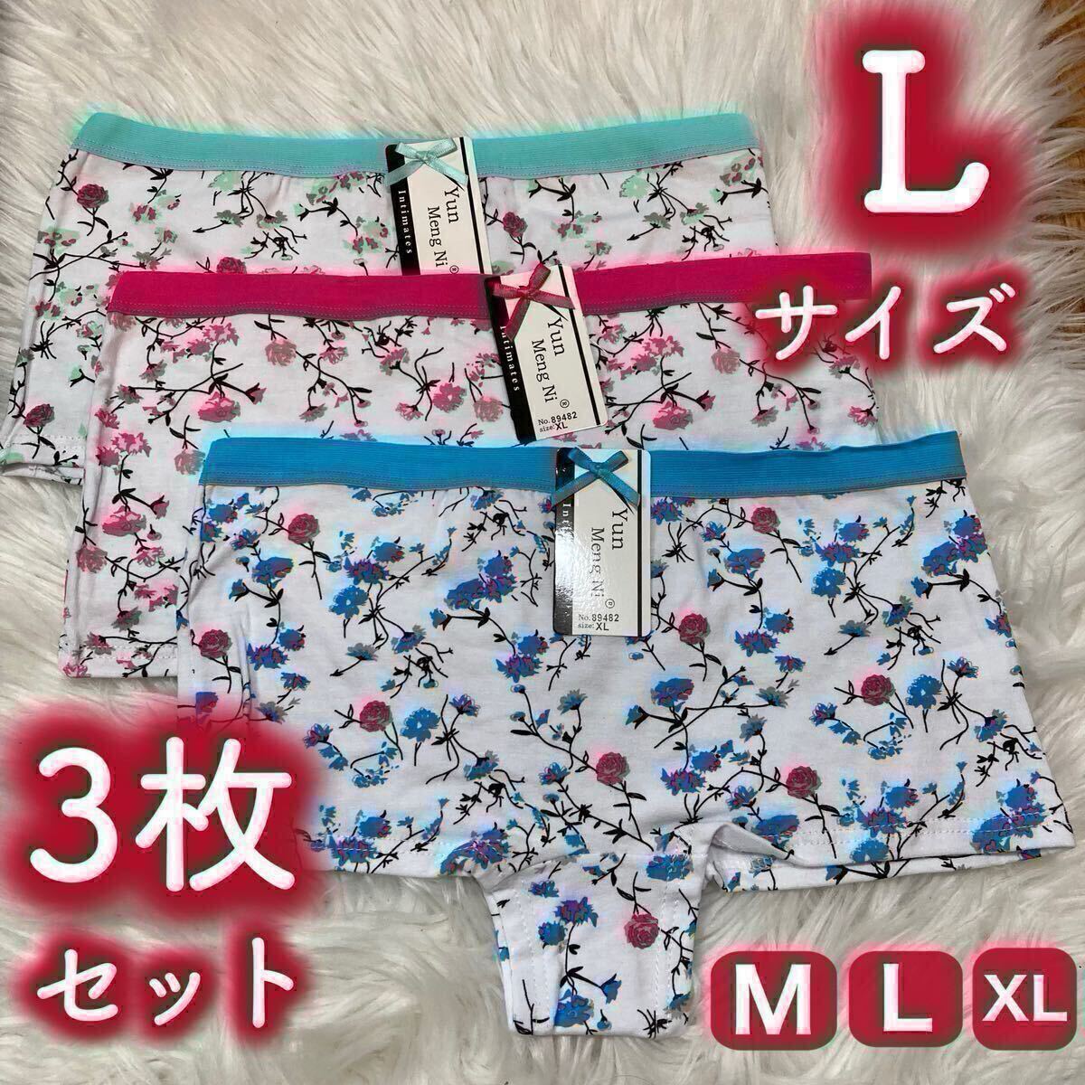 - 3枚セット ボクサーパンツ レディース Lサイズ コットン 綿 下着 ショーツ まとめ売り 立体 ストレッチ ピンク ブルー 水色 緑 グリーン
