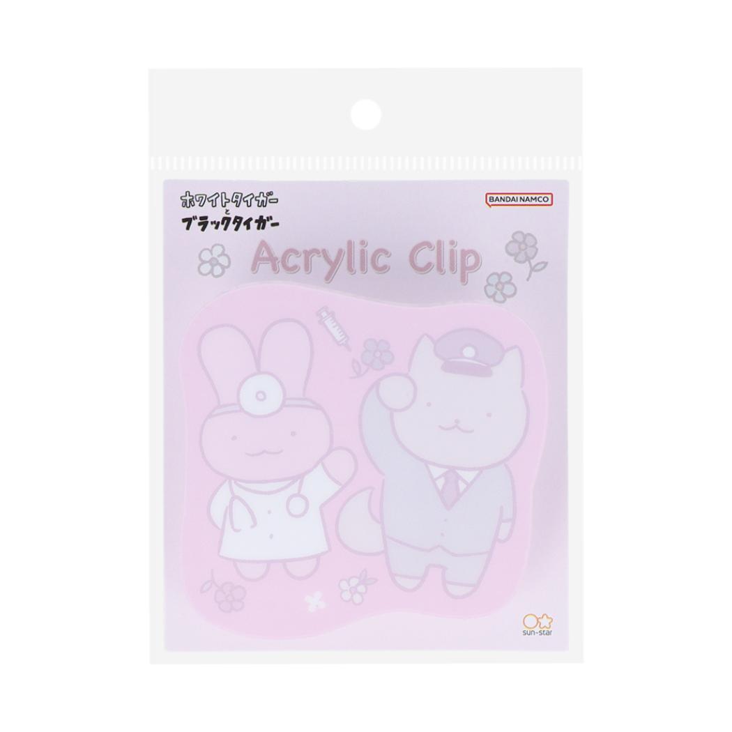 - ホワイトタイガーとブラックタイガー クリップ アクリルクリップ ピンク サンスター文具 新学期準備文具 キャラクター グッズ