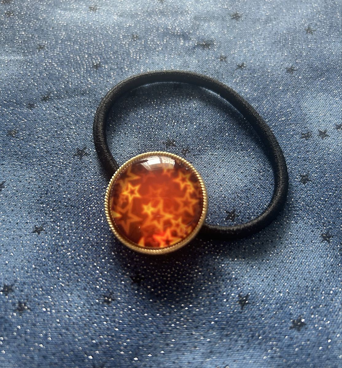 - 在庫整理 ハンドメイド ヘアゴム ガラスカボション 夜空 星 オレンジ アクセサリー