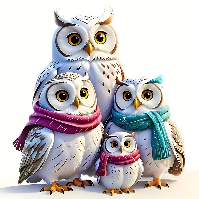 - ステッカー 白いふくろうの家族 フクロウ 車用 アニマル 15cm 梟 マフラー 動物 ノートパソコン ビニール 貼り付け シール 2D バイク t8475