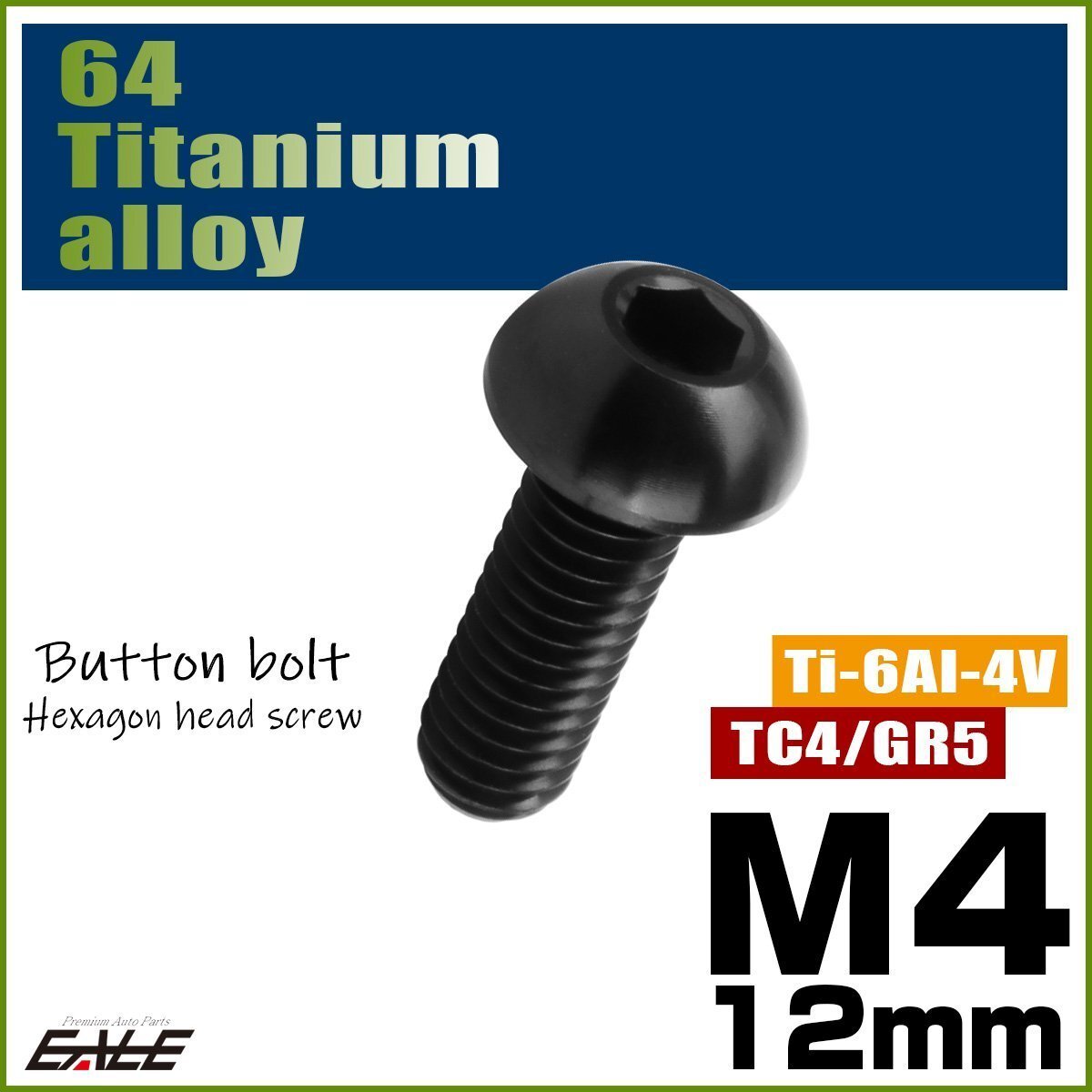 - M4×12mm P0.7 64チタン製ボタンボルト 六角穴 ボタンキャップスクリュー チタンボルト ブラック JA1906