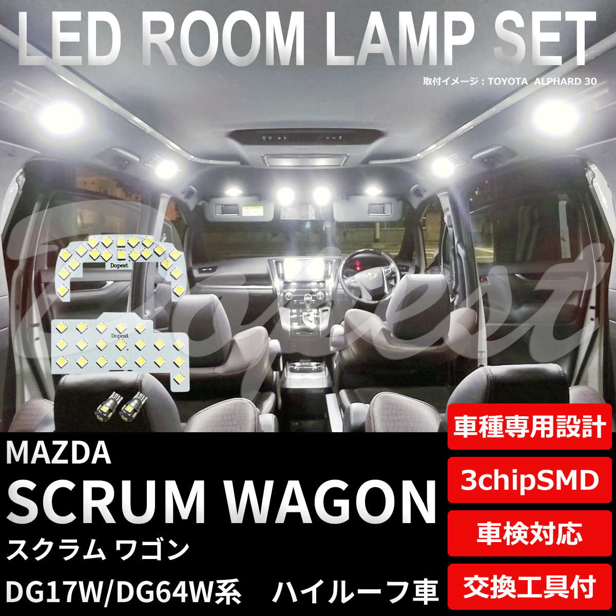 - スクラム ワゴン LEDルームランプセット DG17W/DG64W系 ハイルーフ車専用 室内灯 6500K純白 専用設計 車検対応 車内灯