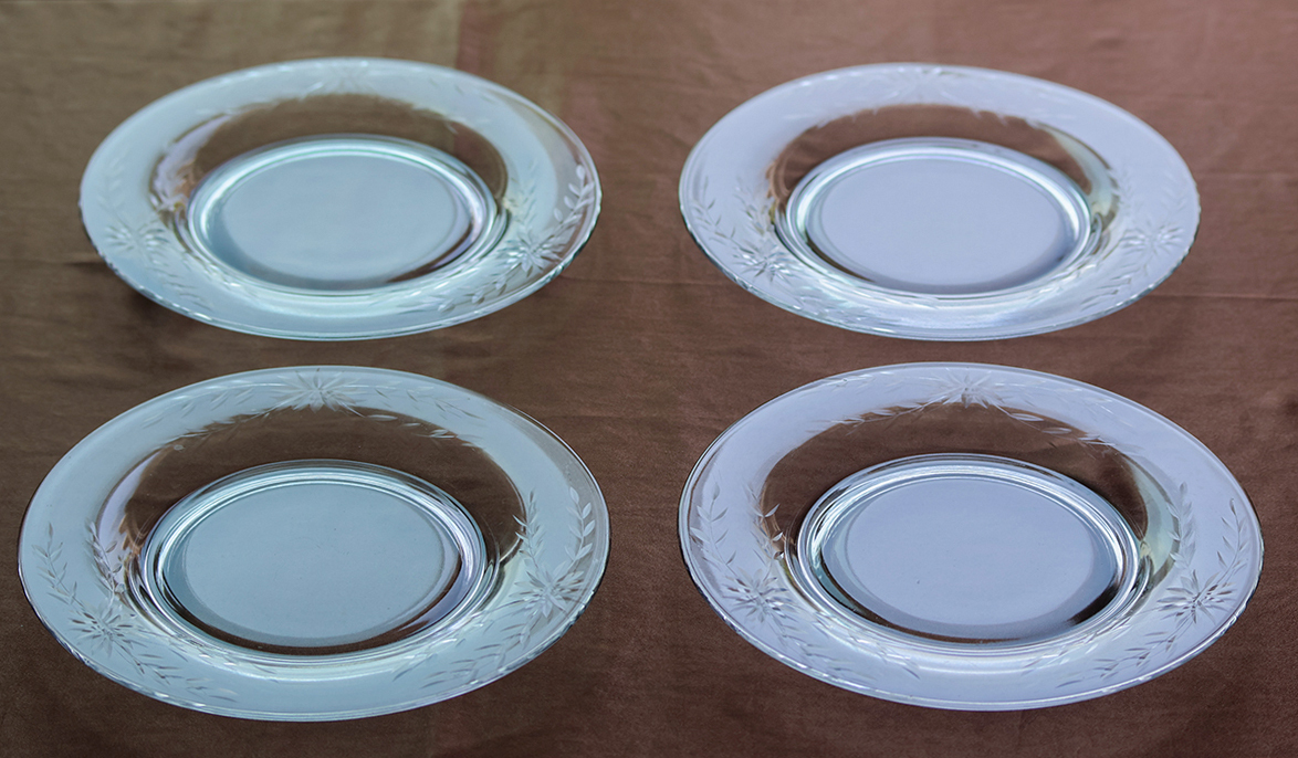 - ティフィン クリスタル フランシスカン フラワー エッチング プレート 4枚セット トレイ 皿 菓子器 ケーキプレート ビンテージ