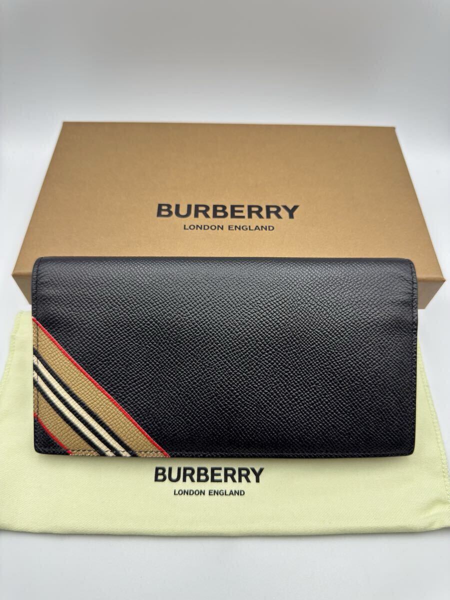 > 極美品 バーバリー 長財布 ブラック レザー 小銭入れ付き メンズ レディース 二つ折り財布 カードケース コインケース ウォレット