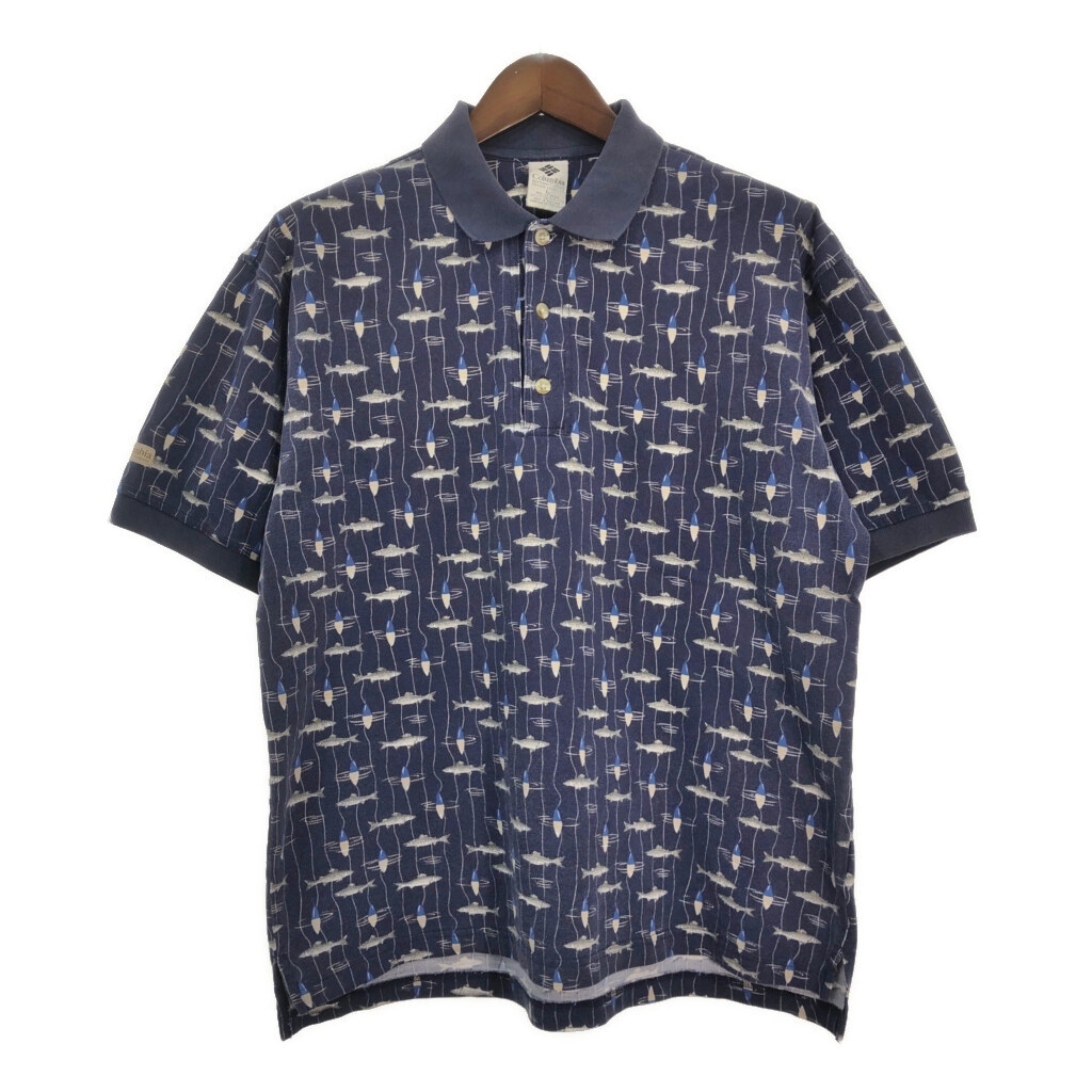 - Columbia コロンビア ポロシャツ アウトドア 総柄 魚柄 ネイビー (メンズ L) 中古 古着 T4696