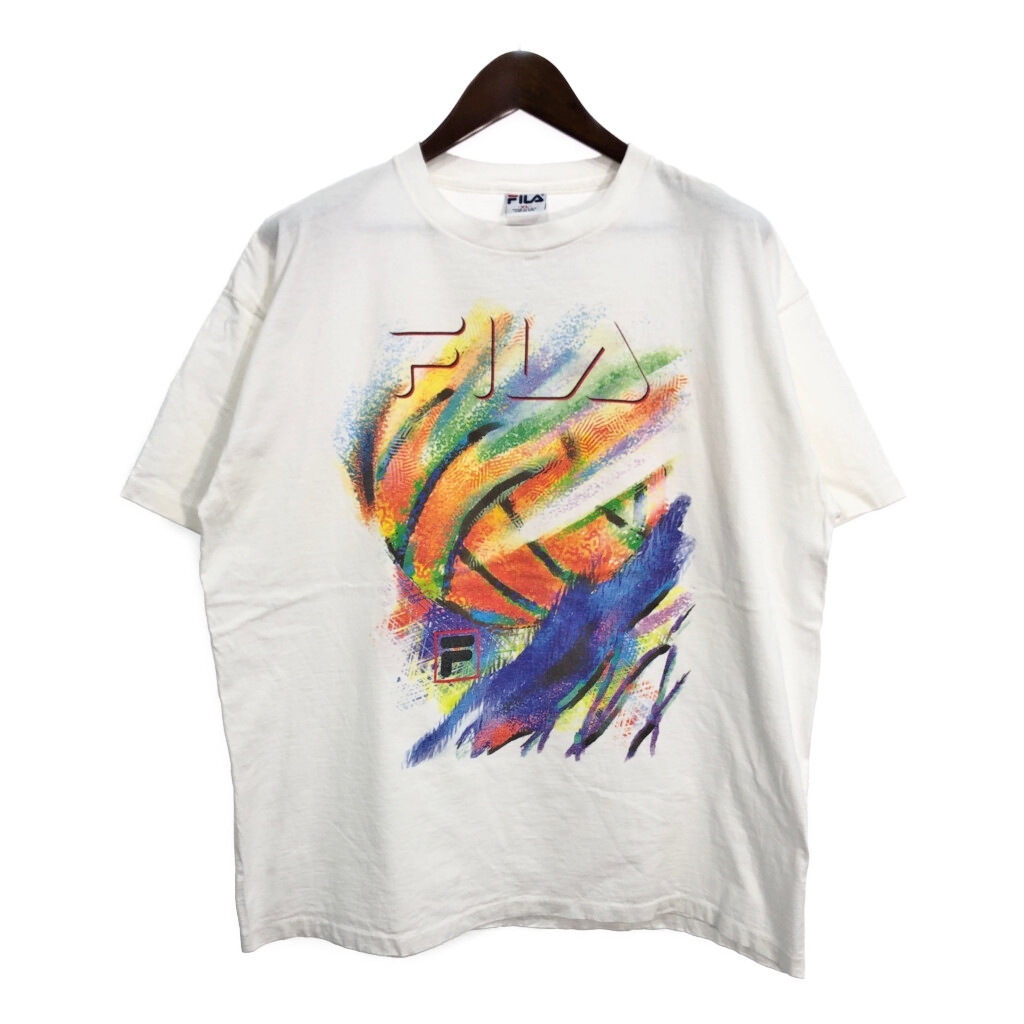 - 90年代 USA製 FILA フィラ 半袖Tシャツ スポーツ ホワイト (メンズ XL) 中古 古着 T4296