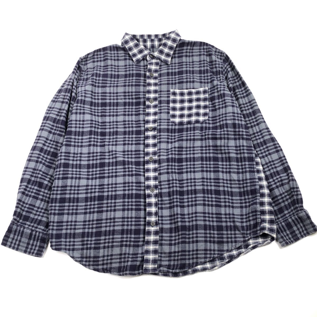 - XL REDMOND クレイジーパターン ネルシャツ 古着 長袖 ネイビー系 チェック ns0208