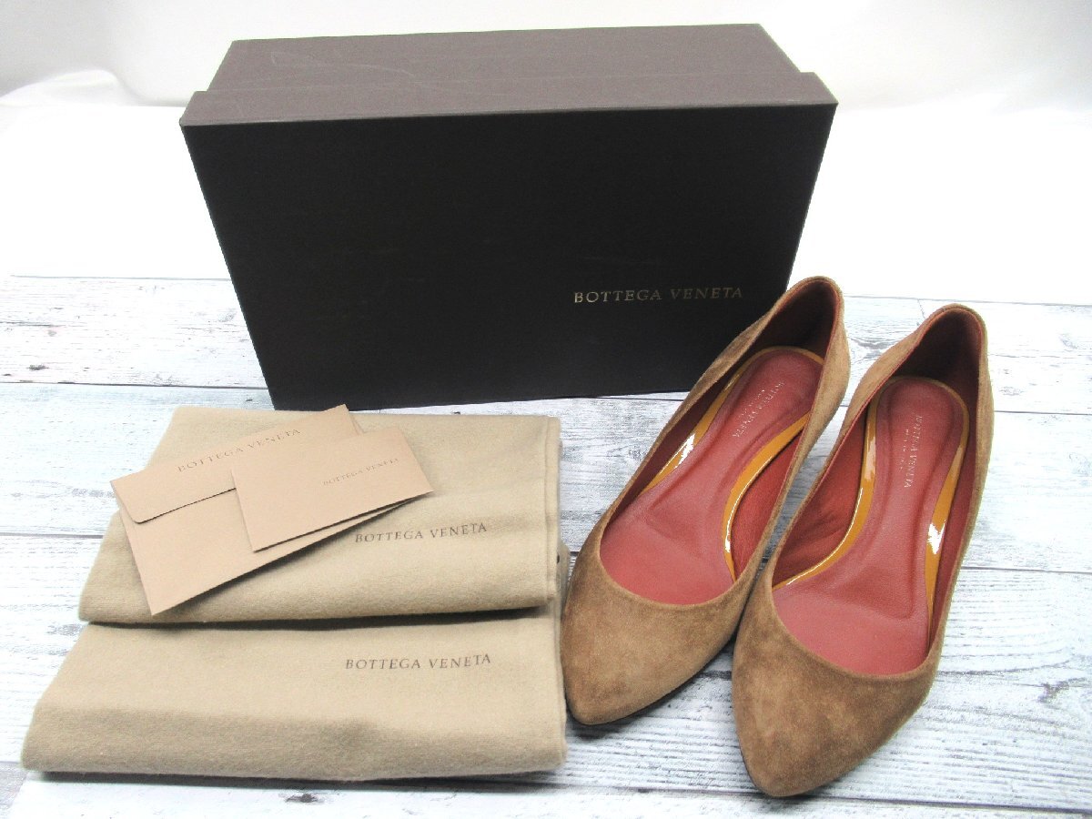 - ★【B送900円】2400 Bottega Veneta ボッテガヴェネタ スエードパンプス ブラウン系 エナメルソール ウェッジ イタリア製 35 1/2