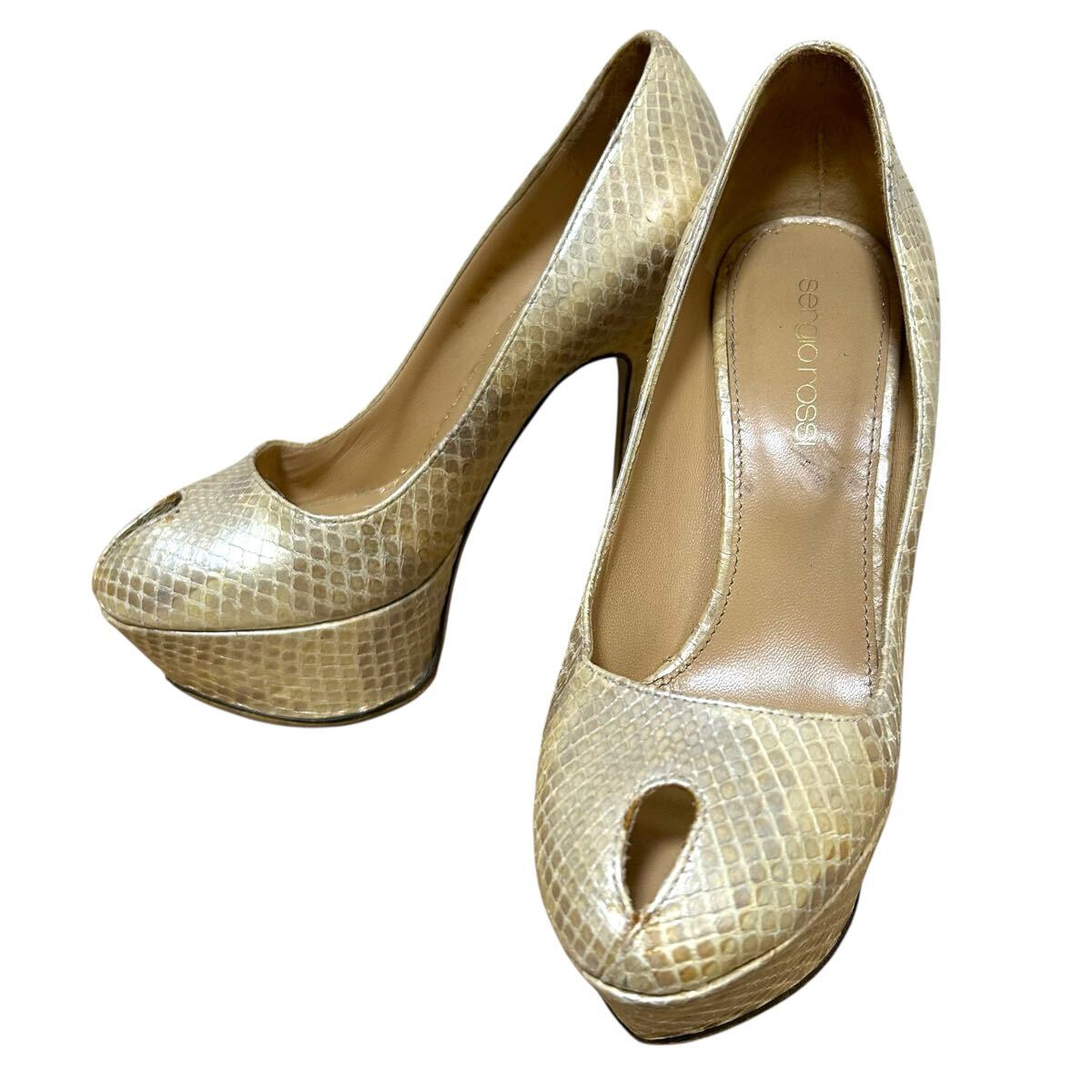 > ※P4 Sergio Rossi(セルジオロッシ) ヒールレザーパンプス ハイヒール パイソン型押し ベージュ 表記34.5(22~22.5cm)