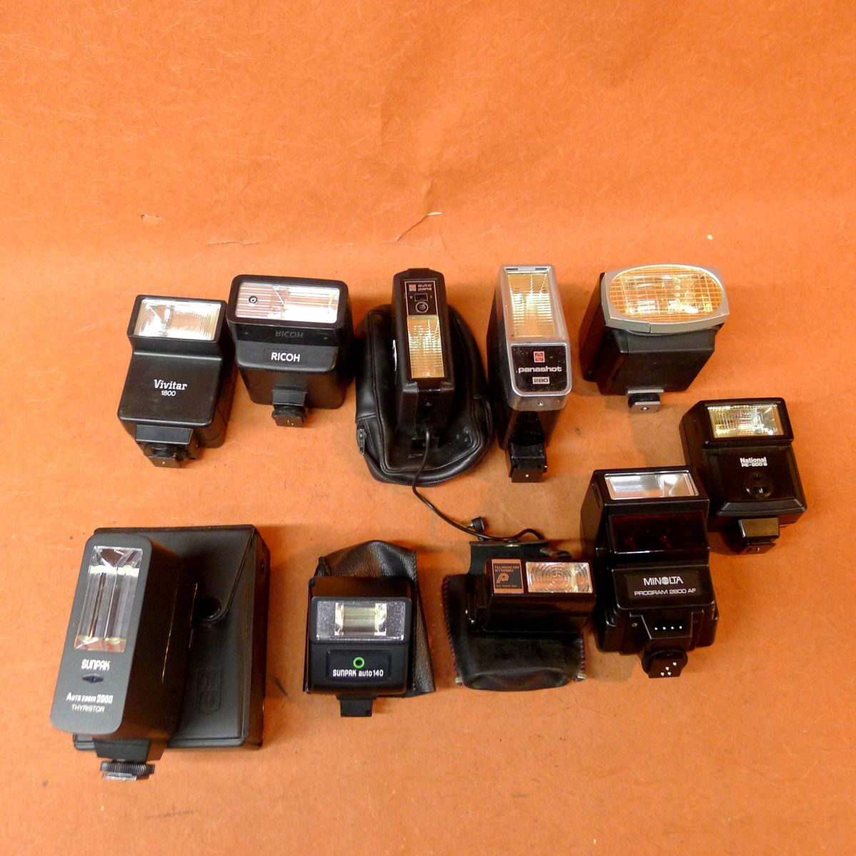 - i◆042 ストロボ まとめて10点①SUNPAK AUTO ZOOM 2000②PE-280③FUJICOLOR STROBO P④PE-200S⑤PE-2001等/80
